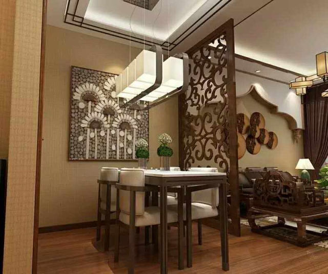 鏤空雕花板隔斷,隔而不斷,雅致又美觀。