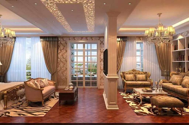 電視背景墻是天然的隔斷,白色立柱體現了歐式風格的優雅、古典。