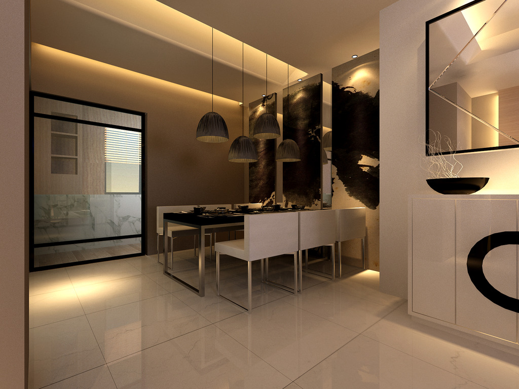 現代簡約裝修風格在家具配置上,白亮光系列家具,獨特的光澤使家具倍感時尚,具有舒適與美觀并存的享受。在配飾上,延續了黑白灰的主色調,以簡潔的造型、完美的細節,營造出時尚前衛的感覺。