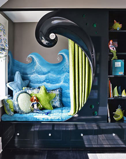 其實這樣的造型并不復雜,只需要一個木制的海浪型床就可以了,剩下的就交給手繪去打造。