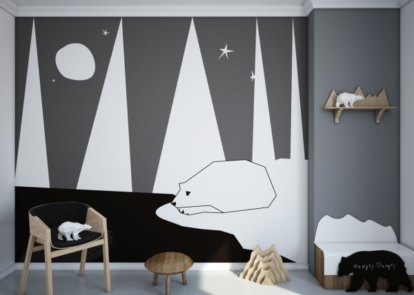 試想一下。孩子進入到兒童房里以后會有一種自己直身北極的幻覺,對面就是正在睡覺的胖胖的北極熊。是不是超玄幻。