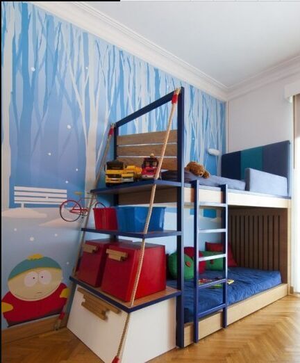 兒童房的裝修設計一定不能沒有手繪,試想你看到下面的這個兒童房設計,如果沒有了手繪圖案,這整個空間看起來該有多美蒼白啊。