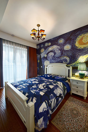 將床頭背景墻設計為廣博宏大的星空讓孩子每天都可以仰望星空是不是一件很不錯的事情呢。