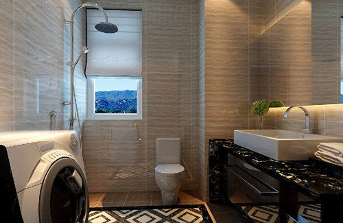黑色是沉寂、壓抑的色調(diào),所以較少人會(huì)用于墻面作為家裝裝飾。但也有人會(huì)用于衛(wèi)生間,起到點(diǎn)綴的作用,在比例上的拿捏也非常重要。建議使用金色在黑色的基礎(chǔ)上加以點(diǎn)綴,在帶來奢華感的同時(shí)還不顯沉悶;而黑白的搭配更為經(jīng)典和時(shí)尚。