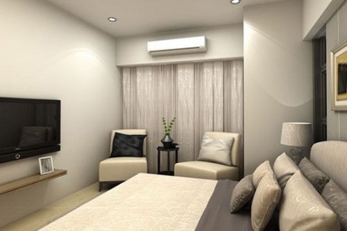 一眼望去,整個臥室就給人非常簡約和舒適的感覺,尤其是軟裝部分都采用可淺色的調調。然后,加上窗邊設置的兩張沙發,使客房的功能與氛圍更加完整了。