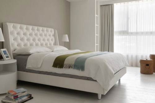 臥室主要是以灰與白的色調,連床都是如此,可以說既簡約又沉穩。利用白色皮革的床頭,讓主臥帶點華麗之感。總之,整體非常的舒適和優雅。